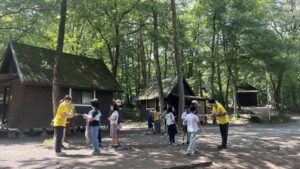 朝の集いをした子どもたちがキャンプ場に戻ってきました。