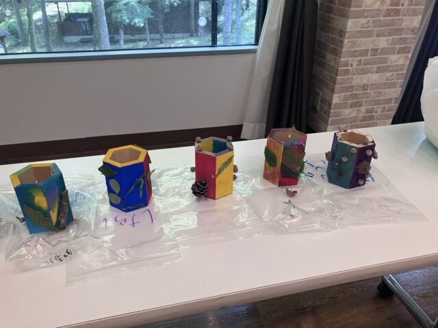 これからお土産のクラフトづくり(ペン立て)作りが始まりました。